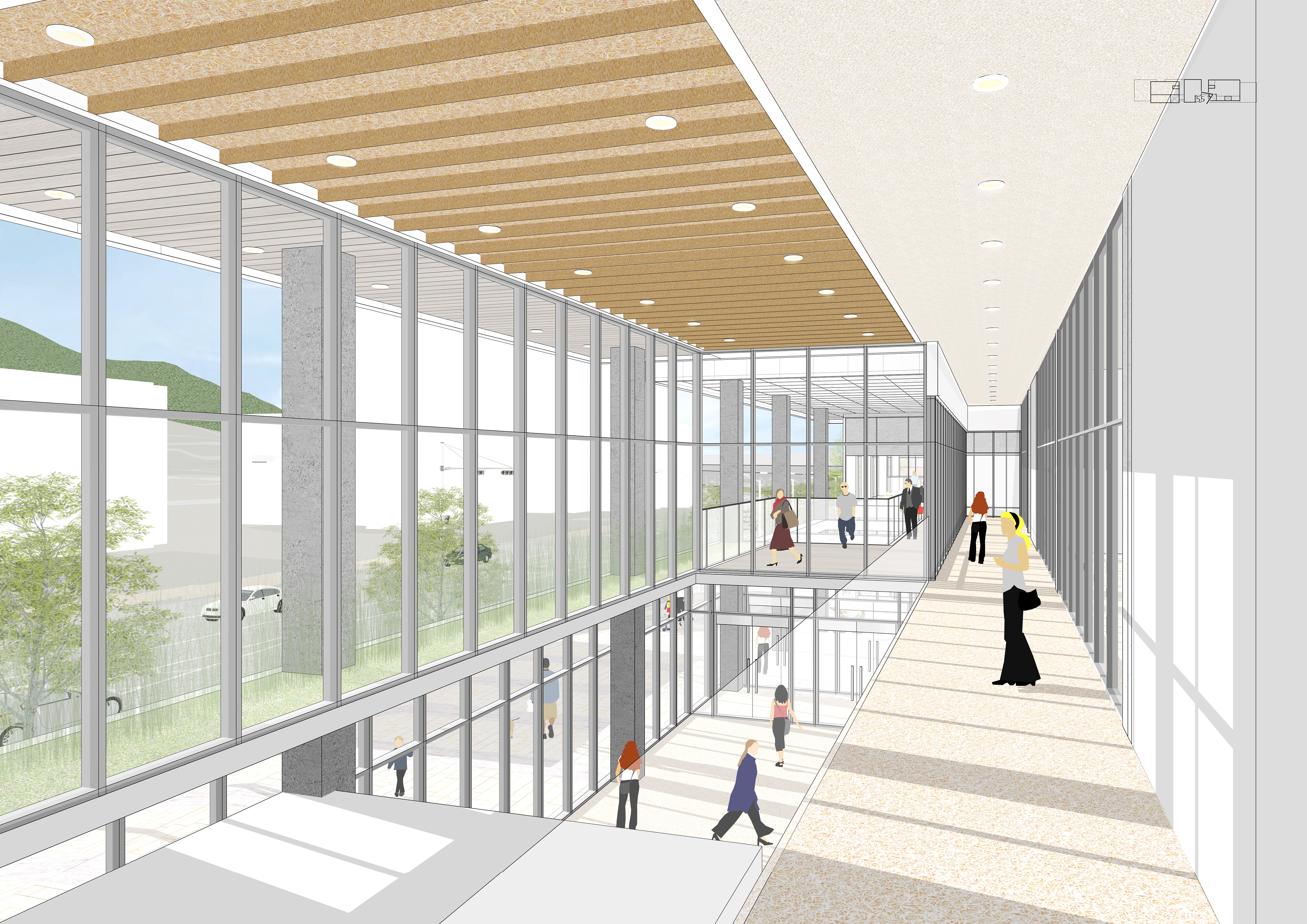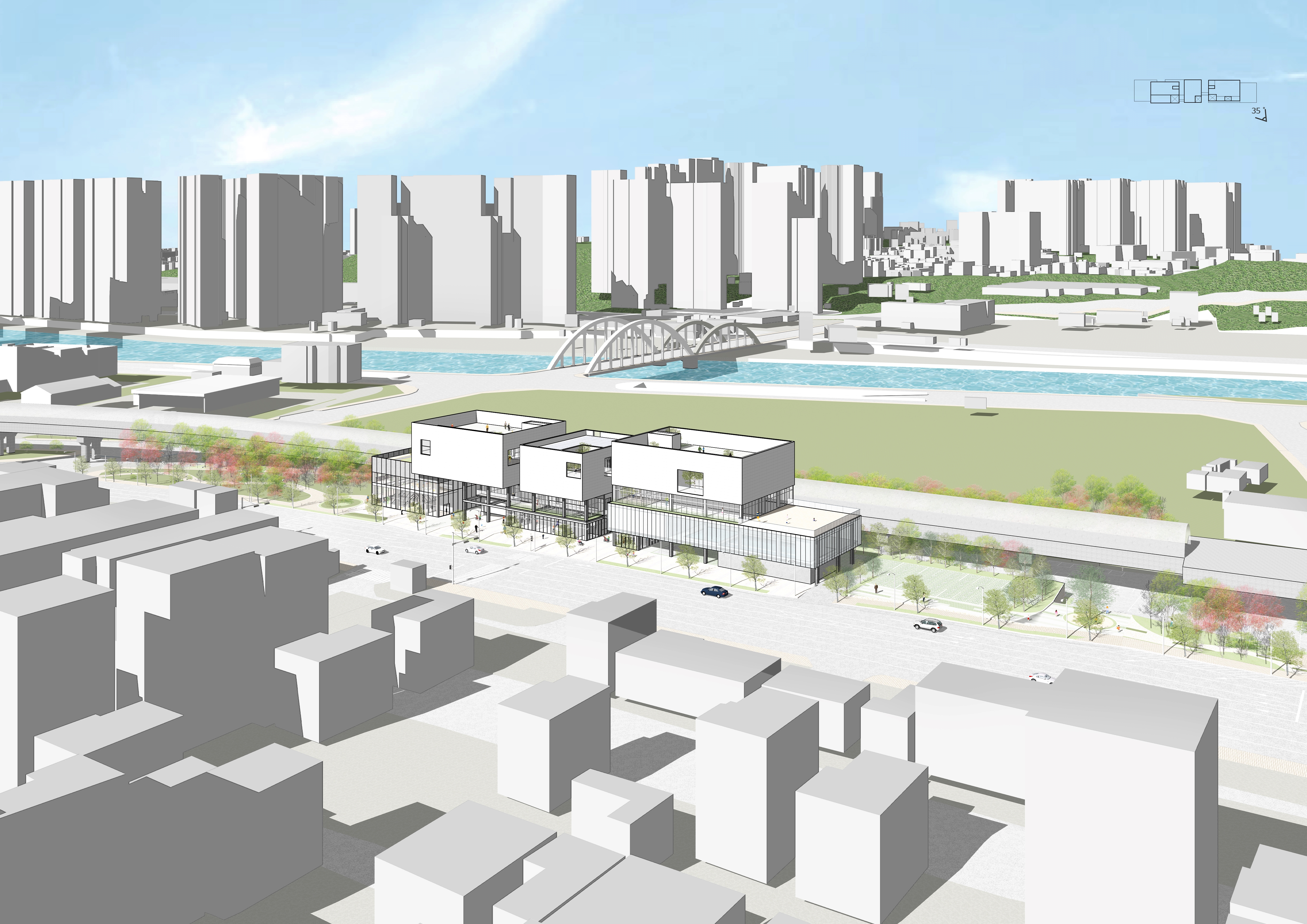 공공건축이 가져야할 좋은 방향을 제시한 안입니다. 장방형의 대지의 단점을 개방적인 1층의 구성으로 극복하였습니다. 1층을 가급적 많이 열어두어 공공성을 생각한 좋은 프로젝트라고 생각합니다. 도로에서 바라보는 건축물의 모습도 3가지의 볼륨으로 구성하여 경쾌하게 보입니다.