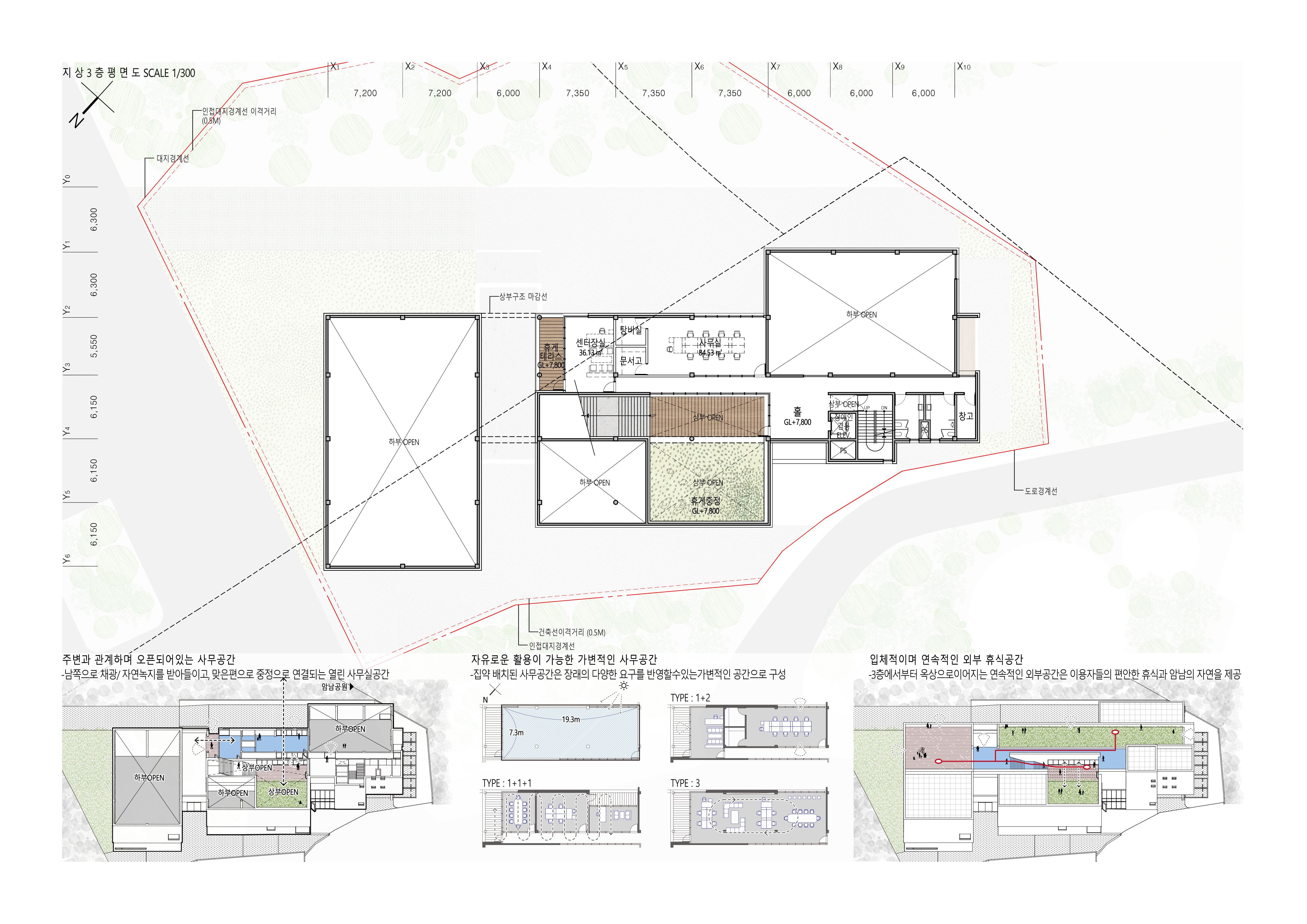 4. 세부시설 공간과 면적은 지침서 내용을 준수하시기 바람. 다만, 설계자의 의도에 따라 다양한 층수 및 공간 구성은 가능함.
