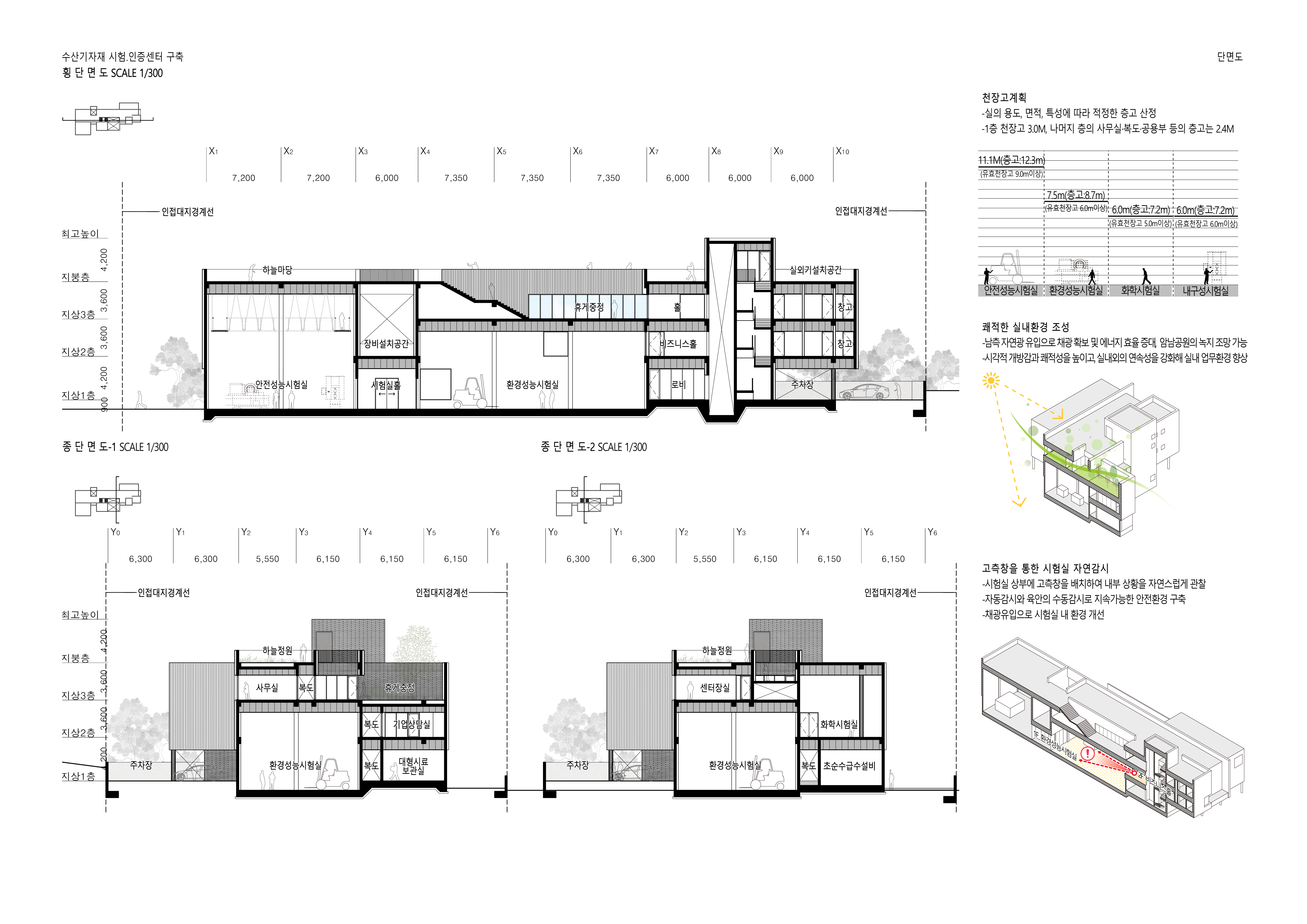 ※ 화학시험실 및 환경성능 시험실은 천정을 통한 환기시설 (후드, 독립 덕트 등) 필요
